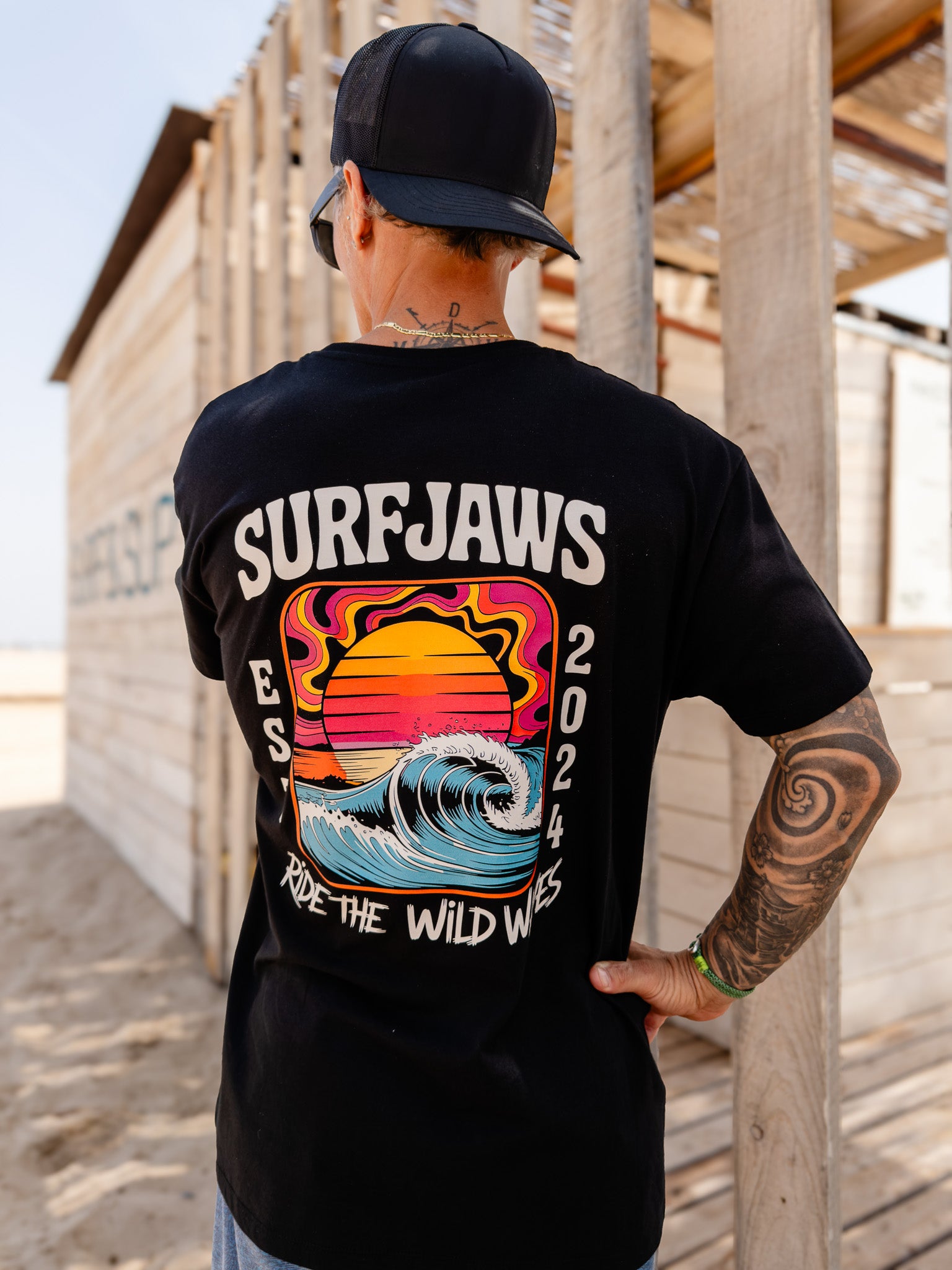 Camiseta SurfJaws Ride the Wild Waves – Surf Salvaje Retro